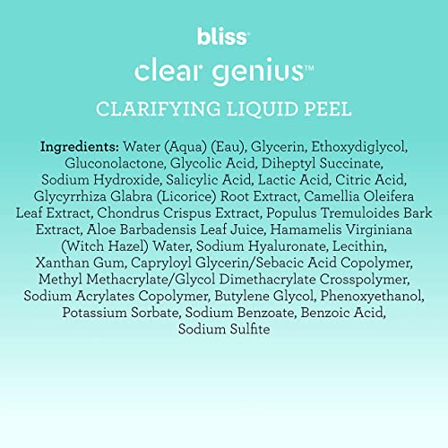 Bliss Clear Genius Clarifying Overnight Liquid Peel – 1 Fl Oz – Clear Pores & Exfoliate Skin – Non-Irritating – Clean – Vegan & Cruelty-Free