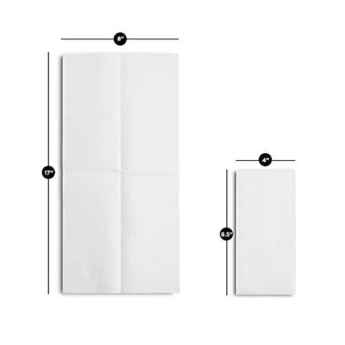 The Linen-Feel disposable white paper hand towel is made of Premium Quality linen-feel paper for greater softness and absorbency than traditional paper towels, is used once only, to help prevent the spread of germs, and has a 1/6 fold design for compact storage and extra absorbency when folded. It is suitable for drying hands, wiping sink and counter surfaces clean, and other general-purpose drying applications. It is most often used in guestrooms and restrooms. Unfolded, each and every paper towel measures 8 x 17 inches.