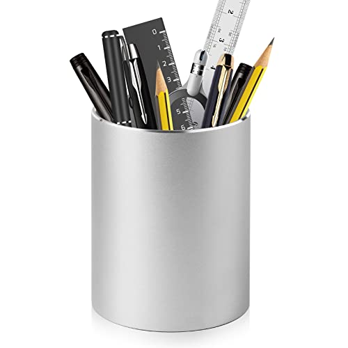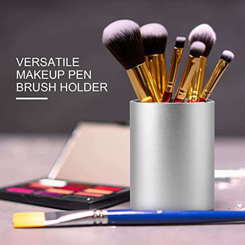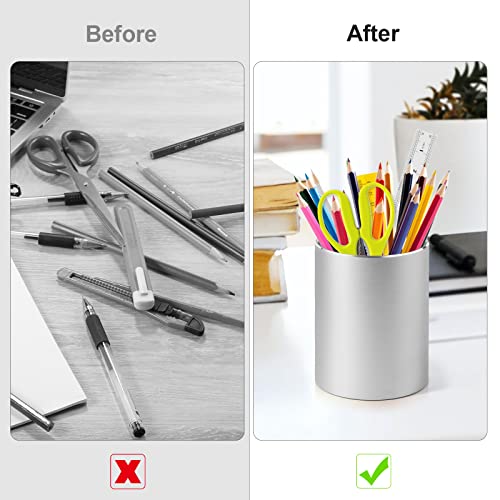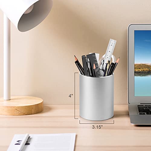 Boershun Pen Holder Pencil Holder for Desk, Metal Desk Pen Cup Holder Makeup Brush Holder, Desktop Pen Organizer and Pencil Cup for Office, Silver 3.15 x 4.0 In