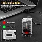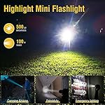 ♥♥12 Lighting Modes & 4 Lighting Color -The small keychain flashlight has 5 modes for the main light (super bright – high light – medium bright – low light- economic), 7 modes of side light ((white light – UV – red light – red light flash – red blue light flash, long press to turn at the white light, click three times to turn at the red-blue flash),which can meet your different requirements. Our tiny flashlight is bright enought and can meet the needs of day by day use even in low-light mode