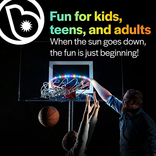 Keep balling and practicing even when others have left the court with these basketball hoop LED lights that light up the rim. When you love playing basketball outdoor there’s nothing worse than when it gets too dark to play, especially when you’re practicing, playing games with friends kids boys girls mum and dad, or simply wish to get in a couple of games of H.O.R.S.E. after work with the kids. That’s why we created HoopBrightz LED Lights for your basketball goal. Designed to create an outline in bright, easy-to-see micro LED lights our multicolor color changing light strip rope strand strings provide you with a clearer picture of rim, so You’ll keep on shooting when the sun goes down. Our motion detecting activated light detects every time a basket ball goal is made through the rim and a swish goes through the hoop. Celebrate your win and score with light up basketball hoop lights when a ball bounces off the basketball backboard and goes through the rim. Buy for bday birthday xmas christmas presents.