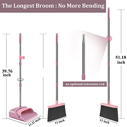 [Extendable Pole Design] -The optional extension pole makes the broom length from 39.76 to 51.18 inches, People can choose the appropriate length according to their height. And long handle allow you to Stand upright for comfortable sweeping.NO MORE BENDING!
