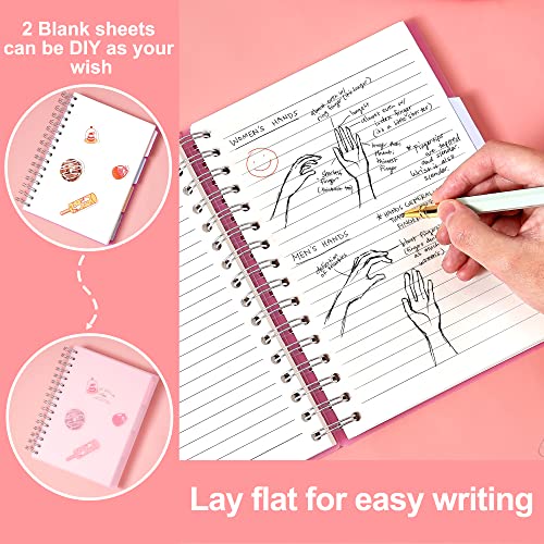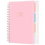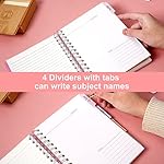 CAGIE 4 Subject Notebook with Colored Tabs 300 Lined Pages Spiral Bound Journal for Women A5 Plastic Hardcover Spiral Notebook with Dividers, 6.3″ x 8.5″, Pink