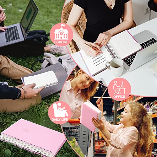 [ SIMPLE DESIGN WATERPROOF COVER ] – The simple transparent cover and gold spirals make the pink spiral notebook simple and good-looking. The sturdy and waterproof PP front and back cover will protect your pages and tabs to keep your important notes or tasks from getting wet or dirty with coffee or juice.