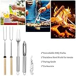 【What’s in Backpacking】 16 PCS camping kitchen equipment provides easy access to all of your grilling accessories and cooking essentials even as you are on the move. Included: Cutting Board * 1, Chef’s Knife * 1, Scissors * 1, Pepper Shaker * 2, Bread Clip * 1, Stainless Steel Grater * 1, Whisk for Eggs * 1, Soup Spoon * 1, Frying Spatula * 1, Extendable BBQ Forks * 2, Stainless Steel Fork for meats * 1, Paring Knife * 1, Corkscrew * 1. You’ll be able to also personalize your kit with other camp cooking gear.