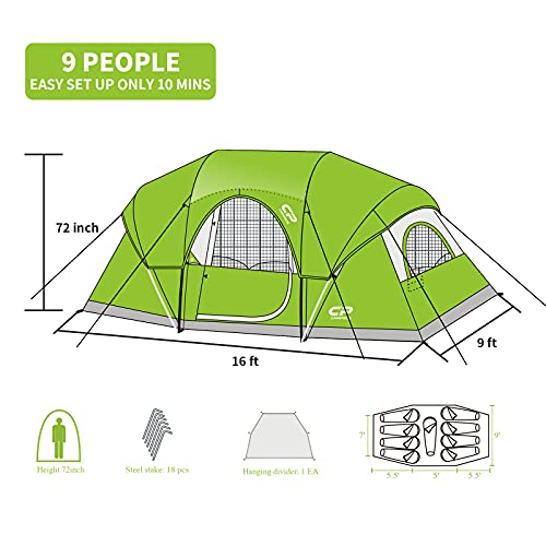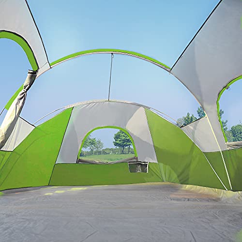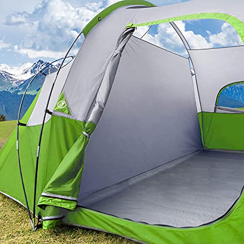 CAMPROS CP Tent 9-10 Person Camping Tents, 2 Room Water Resistant Family Tent with Top Rainfly, 4 Large Mesh Windows, Double Layer, Easy Set Up, Portable with Carry Bag