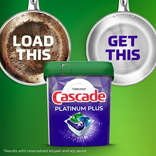 Cascade Platinum Plus ActionPacs dishwasher detergent gives your dishes a breakthrough, cabinet in a position clean. Loaded with 2X* the Morning time grease fighting power, and 2X* the food scrubbing power, it has soaking, scrubbing, and rinsing built right in. You’ll skip the pre-rinse, skip the soak, skip the scrub, and dare to dish another way. Just scrape your dishes and load them into your dishwasher with Platinum Plus to get a superior, sparkling clean, saving you time, effort, and energy vs handwashing. Get virtually spotfree gleaming glassware, dazzling dishes, and pristine pots and pans with Cascade Platinum Plus dishwashing ActionPacs. *Cleaning ingredients vs. Cascade Complete ActionPacs.