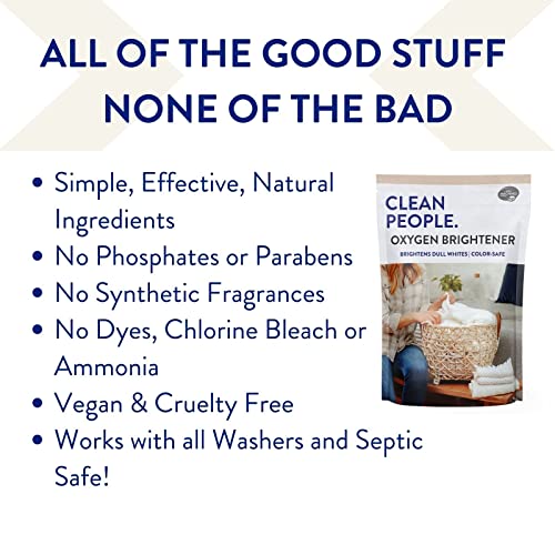 Clean People Natural Oxygen Brightener Stain Remover – Natural Bleach Alternative, Plant Derived Ingredients, Brightens Dull Whites AND Colors – Natural Stain Remover for Laundry – 79 oz