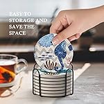 COMPLETE SET – This set includes eight round ceramic stone coasters in 8 styles, while others only has set of 6. The black iron coaster holder will storage your coasters and save the space.