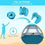 25% Larger Space And Lightweight: Spacious space with size of 78.8″ L × 55.1″ W × 51.5″ H, 25% bigger than other beach tents at similar prices in the marketplace (usually 70” × 50” × 50″). Floor extends 51 inches for extra activity room, which comfortably fits 3-4 people of circle of relatives. Weight is only 3.75LB, it could fold down to a shuttle size of 21″ L x 21″ W x 1.9″ H.