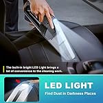 【Efficient Attachments for All-round Clean】-The 3 in 1 hand hoover is equipped with an ultra-long crevice tool, which is a great helper to achieve and clean tight corner and gap of sofa. The Brush Nozzle is used for paper scraps and crumbs on upholstery and car. Extension Tube can reach some hard-to-reach areas and the super bright LED light ensures your cleaning work both in brightness and darkness.