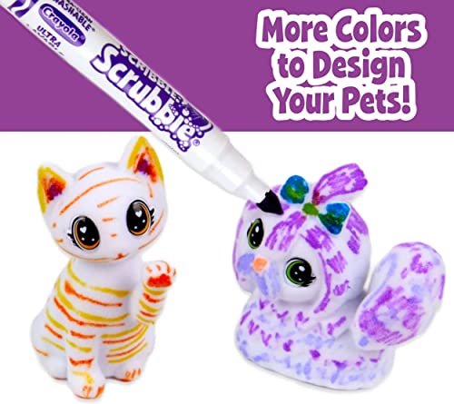 SCRIBBLE SCRUBBIE PETS: Features 24 Mini Washable Crayola Markers and 2 Scrub Brushes. Color and customize your pets, then wash them and start again!