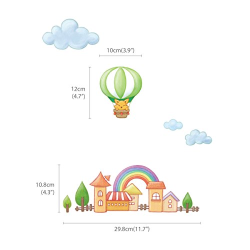 DECOWALL BS-1606 Animal Hot Air Balloon Height Growth Chart Kids Wall Stickers Wall Decals Peel and Stick Removable Wall Stickers for Kids Nursery Bedroom Living Room d?cor