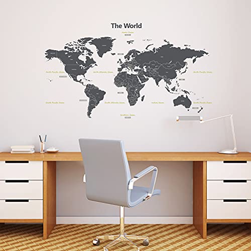DECOWALL DL-1509G Modern Grey World Map Kids Wall Stickers Wall Decals Peel and Stick Removable Wall Stickers for Kids Nursery Bedroom Living Room (Large) d?cor