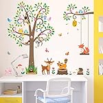 DECOWALL SG-2106 Large Scroll Tree and Animals Kids Wall Stickers Wall Decals Peel and Stick Removable Wall Stickers for Kids Nursery Bedroom Living Room d?cor