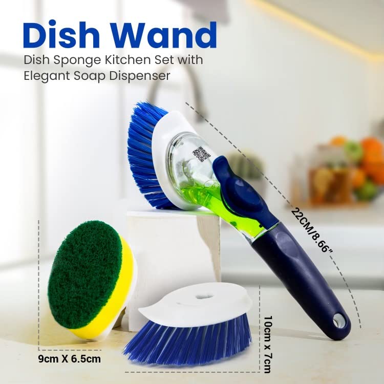 7 PIECE SET: The DELAWARE DURABLES Dish Wand Kitchen Set with Soap Dispenser is not only practical and efficient, but also stylish. Its sleek and modern design is sure to complement any kitchen decor, whilst its 7-piece set ensures that you have all the tools you wish to have to make dishwashing a breeze. The sponge wand and dish brush are designed with built-in scrapers that make it easy to remove stubborn food particles, whilst the non-scratch sponges are gentle yet effective on delicate surfaces.
