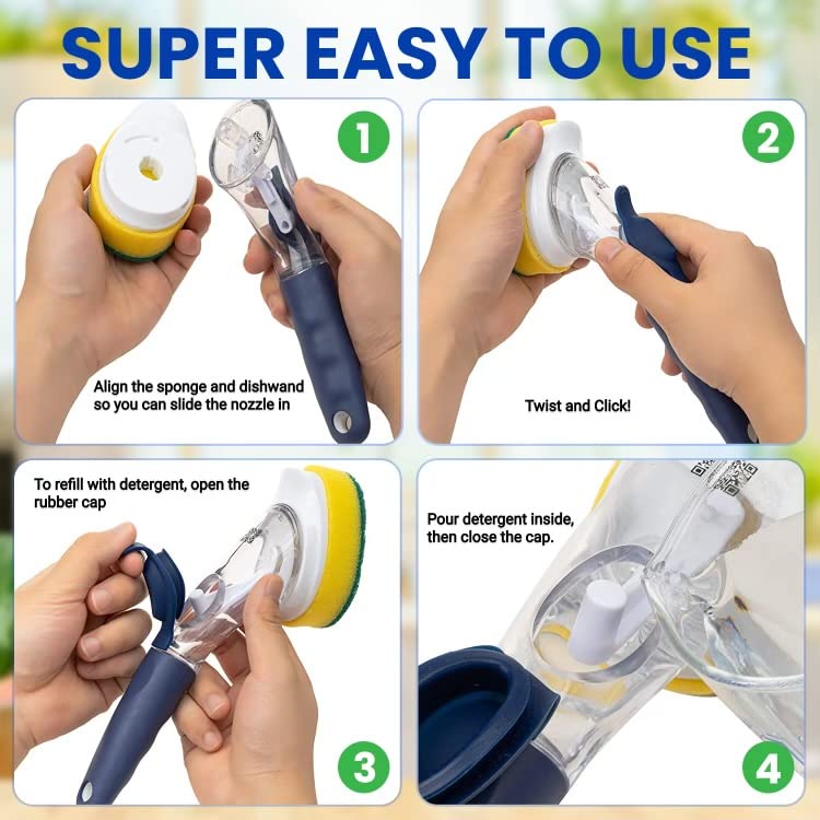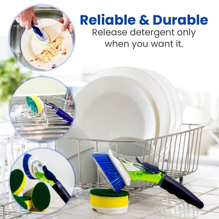 LEAK PROOF: Crafted from high-quality materials, the sponge wand in this set is not only durable and long-lasting, but also designed to be leak-proof. Unlike traditional dish sponges that have a tendency to leak dish soap and make a mess, the DuraSeal feature permits you to release dishwasher liquid detergent only when you wish to have it, ensuring a clean and mess-free experience every time. And with its ergonomic handle, you’ll be sure that your hands stay comfortable even throughout extended dishwashing sessions.