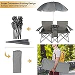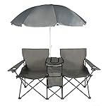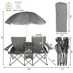 OKL Double Folding Camp and Beach Chair with Removable Umbrella and Cooler.