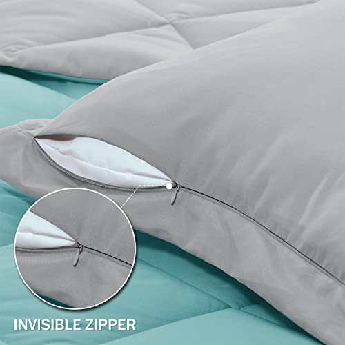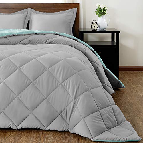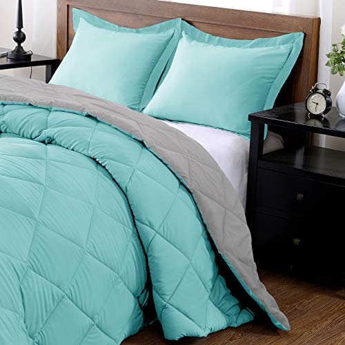downluxe Lightweight Solid Comforter Set (King) with 2 Pillow Shams – 3-Piece Set – Light Blue and Gray – Down Alternative Reversible Comforter