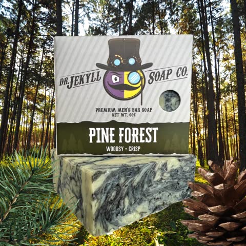 DR. JEKYLL Bar Soap for Men, 5 Pack – Quality Men’s Bar Soap, Masculine Scent, No Harmful Chemicals – Aloe Vera and Jojoba Oil – Natural and Organic Ingredients, Formulated & Handcrafted in the USA – Pine Forest, 6 oz Each