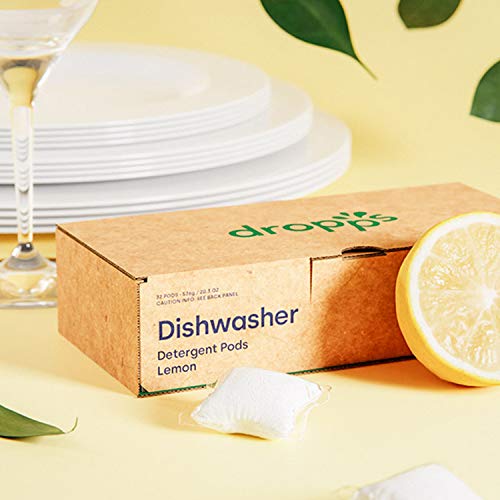 Dropps Dishwasher Detergent | Lemon, 32 Pods | Deep Cleans for Sparkling, Shiny Dishes| Low-Waste Packaging | No Rinse Aid or Pre-Wash Needed | Powered by Natural Mineral-Based Ingredients