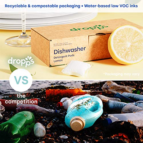 Dropps Dishwasher Detergent | Lemon, 64 Pods | Deep Cleans for Sparkling, Shiny Dishes| Low-Waste Packaging | No Rinse Aid or Pre-Wash Needed | Powered by Natural Mineral-Based Ingredients