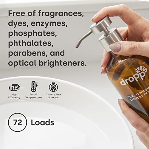 Dropps Ultra Concentrated Laundry Detergent Starter Kit: Sensitive Skin | Unscented | 16 oz (72 loads) | For Delicates/Natural Fibers | Safe & Gentle | Dermatologist-Approved | HE | Refillable Bottle