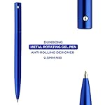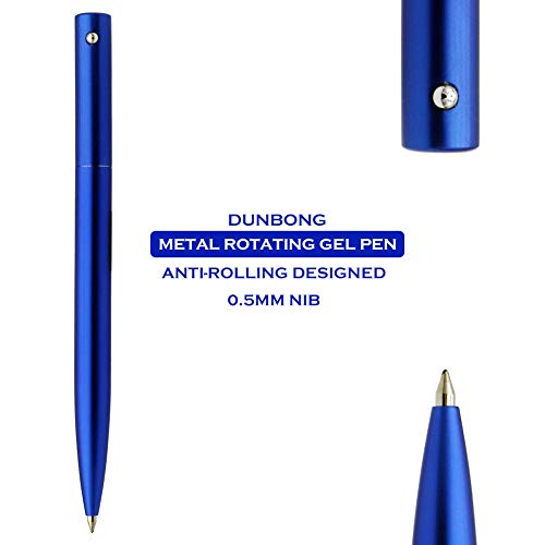 DUNBONG Retractable Metal Gel Pen, 0.5mm Medium Point Ballpoint Pens, Black Gel Ink (Blue)