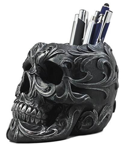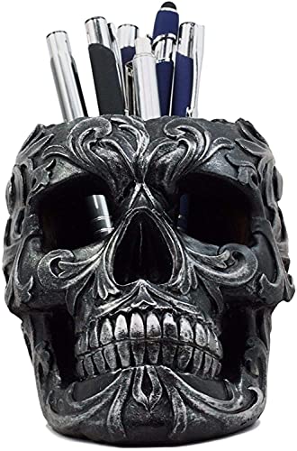 Whether you are looking for a functional stationery organizer for your desk, vanity makeup brush/accessory holder or a skull themed decor for your home, this Skull Figurine is the perfect one for you! Sculpted with high quality resin, hand painted and polished, you will see great details on the figurine giving a touch of style and awesomeness to your setting.
