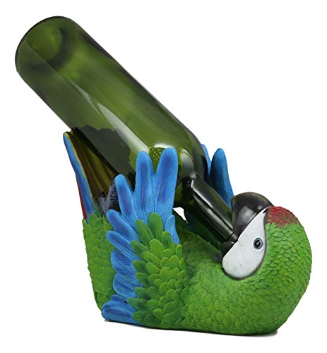 Turn any bar or dining room into a tropical paradise with the addition of this whimsical parrot wine bottle holder! A decorative Caribbean sculpture of luscious colors and splashy detailing that instantly brings sun-soaked beaches and shady tropical jungles to mind. A great tabletop wine rack centerpiece that is certain to be a conversation starter at your next party or event gathering. Makes a great Christmas gift idea for the wine enthusiast or collector of tropical items.