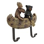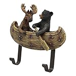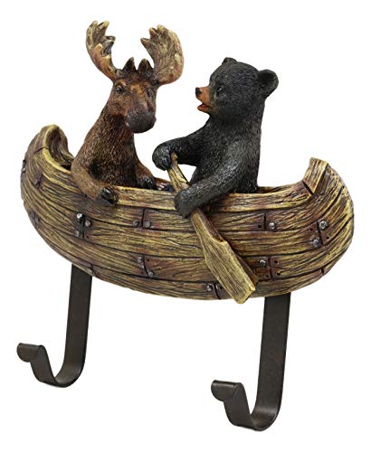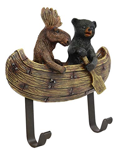 This Forest Creek Buddies Bear And Moose On Canoe Wall Hooks is made of designer composite resin, hand painted and polished individually. Color Tone may vary slightly from pictures.