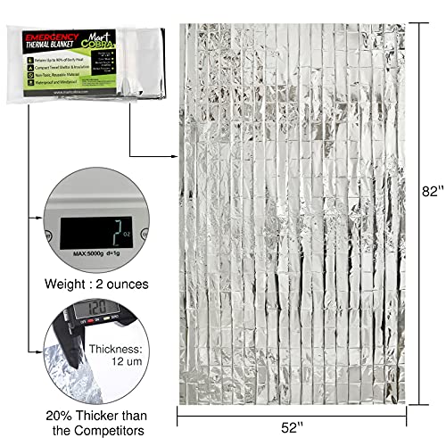 FULL BODY PROTECTION: Each and every 82″ x 52″ emergency thermal blanket for camping is larger than customary safety camping emergency blankets. Space blankets survival heavy duty may also be emergency shelter survival tent or aluminum tarp emergency warming blanket