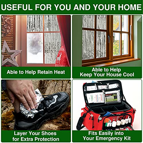 REFLECTIVE MYLAR EMERGENCY BLANKET PACK: Reusable mylar blankets survival thick NASA developed, retains 90% body warmth as life shock survival blankets extreme cold protection. Car blanket emergency emergency blanket lightweight mylar blanket for cats