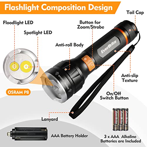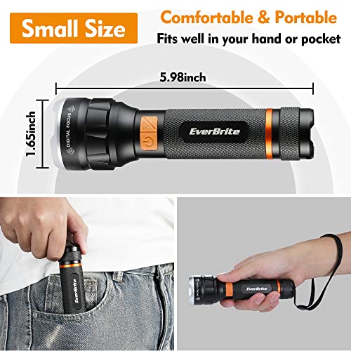 EverBrite LED Flashlight High Lumens, Super Bright, Zoomable Aluminum Flashlight with Digital Focus, 4 Modes, Water Resistant, Adjustable Brightness for Camping, Emergency, AAA Batteries Included