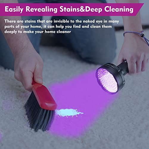 Stain Detection: This 128 LED UV flashlight can assist detect stains that are invisible to the naked eye, such as pet urine stains, carpet stains, and so forth; It help you easy to find and clean up in time, allow you to pay more attention to the cleanliness and health at the same time as enjoying the company of pets.