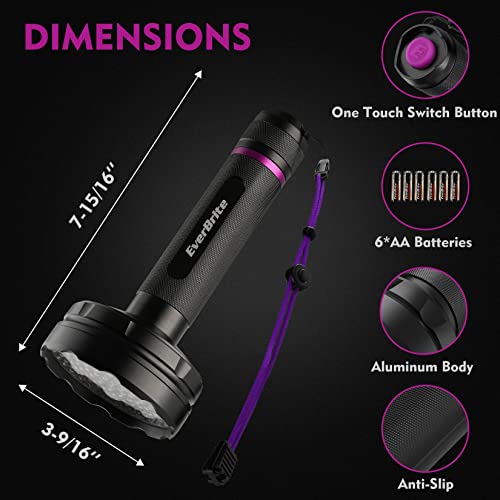 EverBrite UV Flashlights, 128 LED Blacklight Flashlights, 395 UV Flashlight, Black Light Flashlight for Pet Urine Detection, Carpet, Scorpions and Bed Bug, Batteries Included