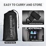 The new Extremus portable camp shower is the perfect way to take hot, comfortable showers in outdoors even as camping. The high-capacity bladder will hold 6.6 gallons/25L of water which is more than enough for a hot shower on a daily basis even as camping. The heavy-duty, black PVC bladder will heat water when hung in the full sun and provide enough hot water for a great shower. There is even a built-in thermometer that is visible on the outside of the bladder so you’ll monitor the temperate of the water inside the bladder and know when you’re ready for the next shower. There is also a mesh pocket that is welded to the outside of the bladder to keep shower accessories like soap, shampoo and more easily accessible. There is a large, water fill hole to make it easy to fill the bladder and the ABS shower nozzle has a built-in On/Off switch to keep watch over water drift and save water. There is also a mesh storage bag that allows the shower to dry between uses and keeps it secure throughout transportation.