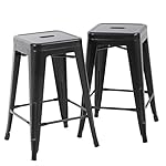 FDW Bar Stools Counter Stool Barstools Set of 2 Industrial Metal Bar Stools Patio Furniture Modern Backless 24” Stackable Metal Indoor/Outdoor Bar Stools Kitchen Counter Stools Chairs