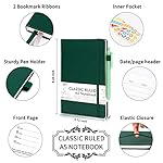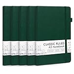 feela 5 Pack Journal Notebook Bulk for School, Hardcover Business Notebooks Classic Ruled Lined Journals with Pen Holder for Work Note Taking, with 5 Black Pens, 120 GSM, 5.1”x8.3”, A5, Dark Green