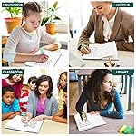 Feela 5 Pack Classic Ruled Notebooks contains 5 classic dark green ruled sturdy cover notebooks and 5 Black Retractable Pens. Every of the notebooks measures 8.3” x 5.1”, which is perfect to carry and easily held by young girls and boys. These black cute pens are customized to be placed in the pen holder, which is pretty convenient.