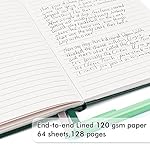 These classic ruled notebooks are all blank inside with 128 lined pages (64 sheets), which would be convenient for daily usage. The hard cover journal has a water-resistant faux leather cover, round corners and bookmarks, which is designed to lay and open flat. There’s a “date/page” column on the top of each page. You’ll be able to use it as a reminder to will let you take into account that those important dates and find the page you wish to have in a very short time.