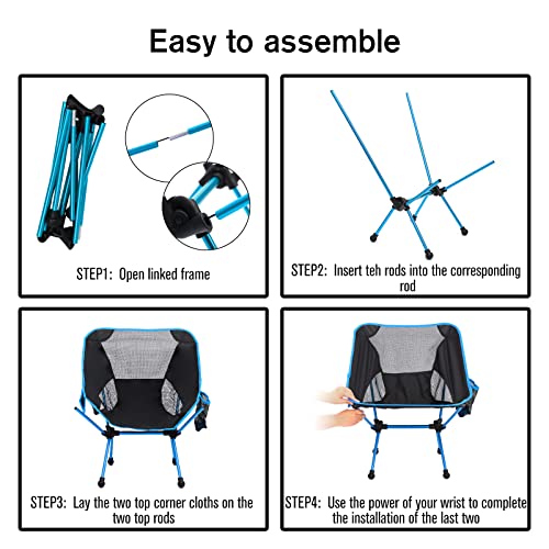Fineman Backpack Camping Chairs for Adults, Folding Portable Camp Gear Outdoor Chairs, Lightweight Beach Chairs for Travel, Fishing, Hiking, Stadium, Patio, Picnic Light Blue