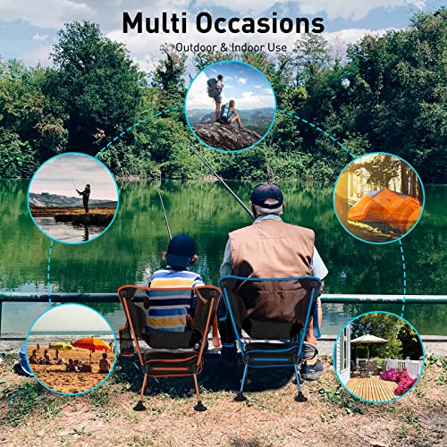 [COMFORTABLE & COMPACT]: The camping chairs with breathable cooling reinforced mesh back makes you feel cool, much more, you won’t feel tired to sit in for very long cause the deep seat area can decline the pressure of your body.