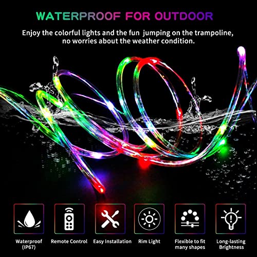 FirstE LED Trampoline Lights for 14Ft 12Ft 10Ft 8Ft Trampoline, 16 Colors 9 Modes Waterproof Trampoline LED Lights, Remote Control, USB Plug Trampoline Accessories Lights, LED Rope Lights for Patio