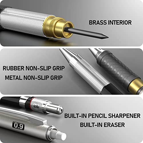 【Two type anti-slip grips】Optimal weight and Rhombus textured rubber grips and metal grips with an anti-slip texture. the metal pencil boasts a fully metal body design to make sure a protected and comfortable grip even as writing or drawing, without causing fatigue.