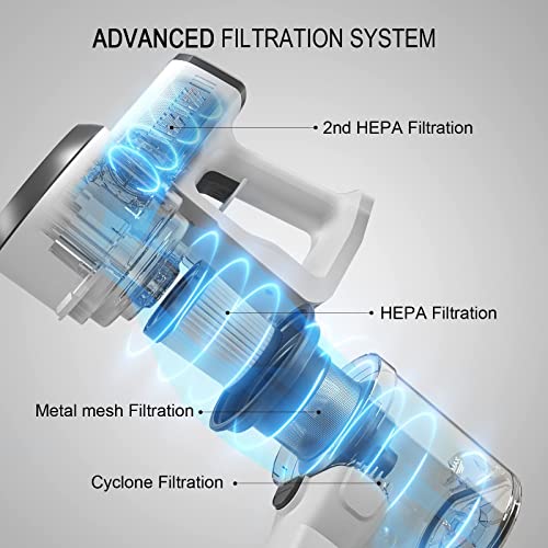 High Efficiency Filtration System: The vacuum cleaner with advanced 4-stages HEPA filtration system can aptures large particles and 99.99% micro dust as small as 0.7um, cyclone reduces bulk and prevents obstructions – airflow is split to direct only clean air through the turbine.