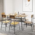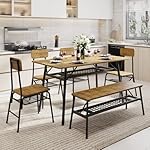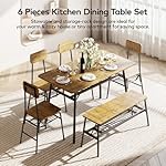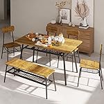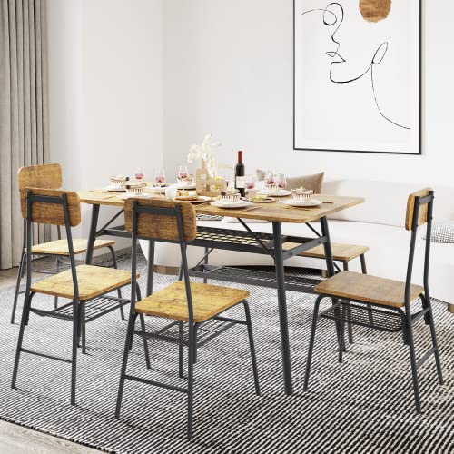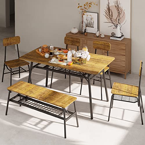 Gizoon 6-Piece Dining Table Set, Kitchen Table and Chairs for 6, 46in Sturdy Dining Room Set w/Storage Rack for Home, Apt, 4 Chairs, Bench, Small Space, Retro