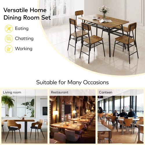 MODERN INDUSTRIAL DINING TABLE SET: The versatile dining room set is finished in a rich retro color with natural wood grain, bringing a level of sophistication and elegance to your dining room or kitchen.