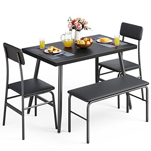 Gizoon Dining Table Set for 4, Kitchen Dining Table Set with Bench and 2 Chairs for Small Space, Apartment