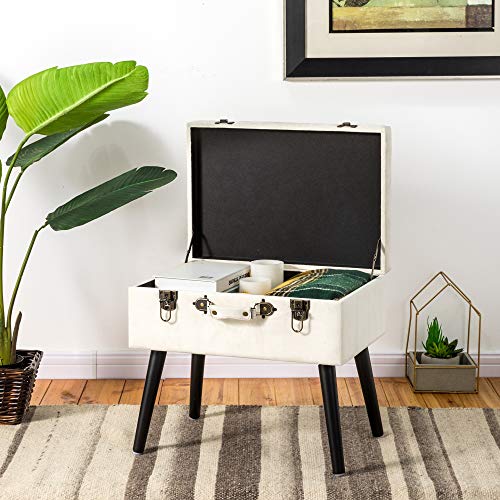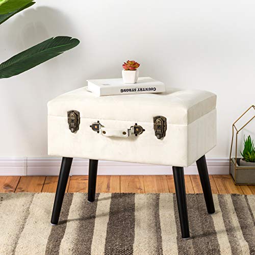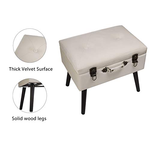 glitzhome Velvet Storage Foot Stool Ottoman Vanity Footrest Stool Seat Modern Upholstered Ottoman Dressing Footstool with Button Tufted Seat Wood Legs Decorative Accent Furniture, Cream White